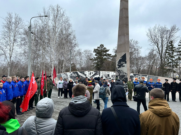 9 апреля студенты Омской гуманитарной академии приняли участие в торжественном старте патриотической акции «Эстафета Памяти» и возложили цветы на площади у памятника Труженикам тыла.