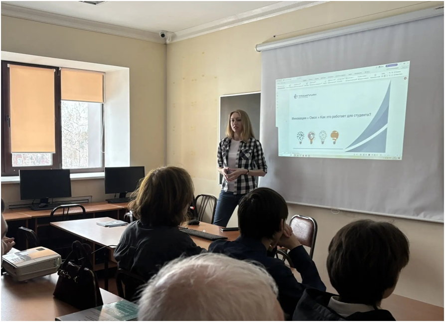 В Омской гуманитарной академии (ОмГА), 17 марта 2026 года, под руководством представителя венчурного фонда "Трамплин Венчурс", Грачёвой Н.П., был проведён мастер-класс по инновационному проектированию для студентов ОмГА и Гуманитарного колледжа г. Омска. Мероприятие организовано кафедрой экономики, политологии и управления персоналом в рамках недели «Студенческой науки - 2026», ответственный за проведения мастер-класса был к.э.н., доцент Ридченко А.И.