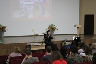 10 октября 2023 года в ЧУ ОО ВО «ОмГА» состоялась творческая встреча с авторами сборника патриотической поэзии и прозы «Координаты своим» Ю.П. Перминовым, В.Ю. Ерофеевой – Тверской, М.А. Безденежных, И.Н. Гореловой и др.