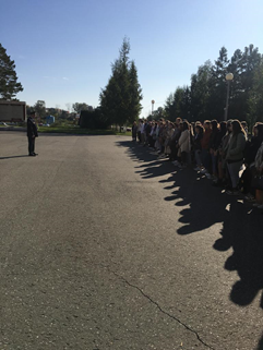 В 9:50 всех студентов колледжа и академии собрали на площади у входа в здание. Проректор по общим вопросам и безопасности Салахов Галимжан Шаукатович рассказал собравшимся участникам о том, как действовать в случае пожара и террористического акта.